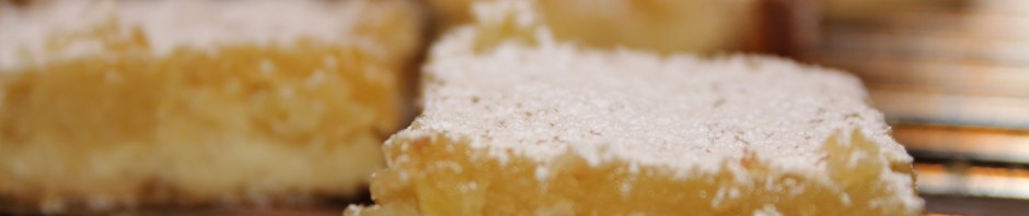 Step 4. Pour the filling (it will be runny) into the prepared crust and bake for another 20 min. until the filling is set. When cool, cut into squares or rectangles. Shake some confectioner’s sugar on top. I used my tea strainer for this.