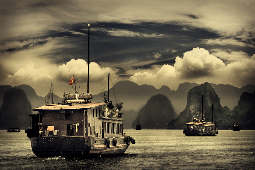 Also from my 2007 archives, another one of my few “landscape” efforts. This was taken early morning at the spectacular Halong Bay in northern Vietnam, the typical tourist junks being on their way for the day’s events. Well worth a visit if you’re in Vietnam.