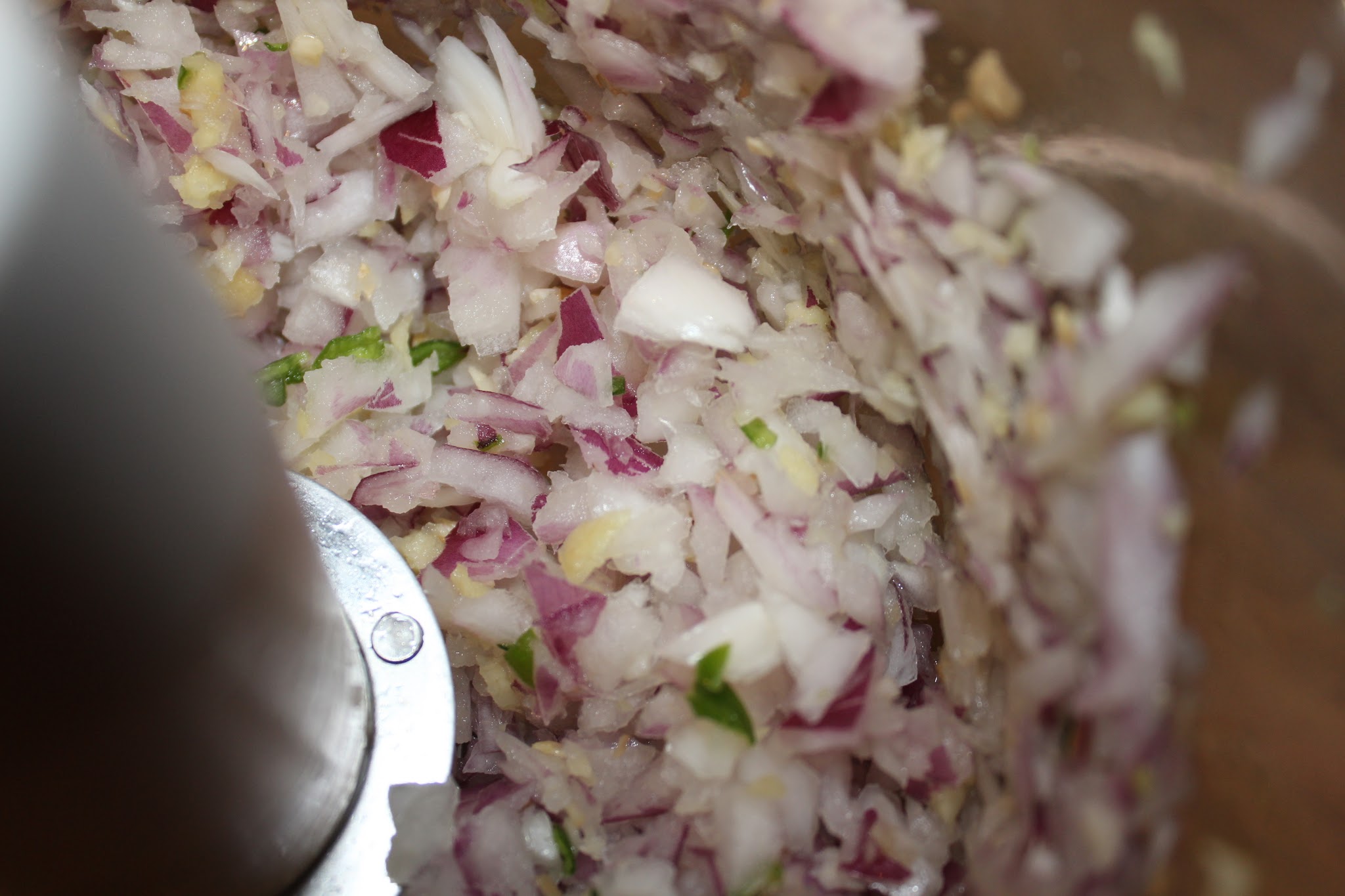 Then, chop onion, green Chile and coriander finely.