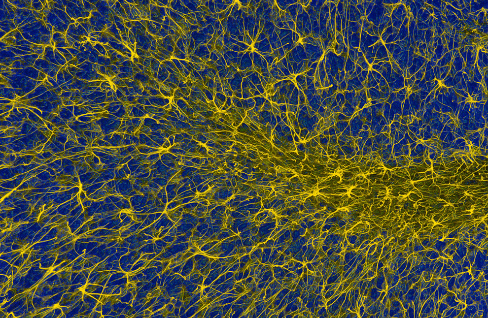 Cellular or Celestial? A tapestry of stars, like “the heavens’ embroidered cloths, enwrought with golden and silver light”, astrocytes tile the entire central nervous system in a continuous and essentially non-overlapping manner that is orderly and well organized. A single astrocyte may contact 100,000 synapses!