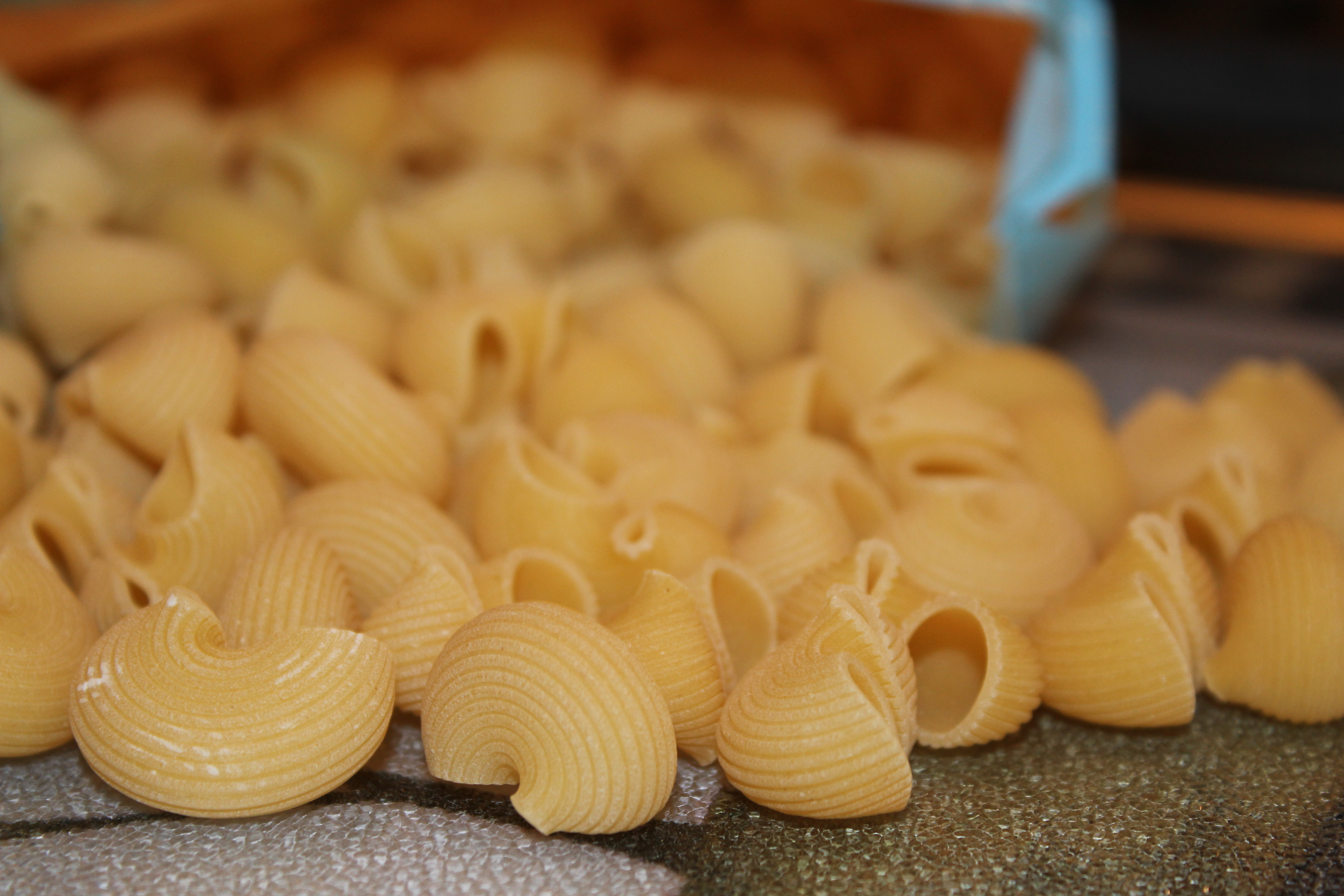 • Proceed to bring a pot of water to boil. I chose chiocciole, a pasta with ridges and holes. Any kind will do.