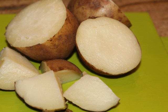 • You can use canned chickpeas, but it’s easy to cook your own. Just submerge a cup of dry chickpeas in water overnight or before you leave for work. Because chickpeas are essentially bland, I layer in spices: to the cooking water, add a bay leaf or two, one clove of garlic, a few whole peppercorns and cloves, a pinch of coarse salt and turmeric. A quick drizzle from my oil dispenser and the chickpeas are ready to be blasted in my ancient pressure cooker. Of course, you can also cook them directly on a stove top; you’ll know they’re done when softened. (I also cook a couple of whole potatoes in the pressure cooker, along with the chickpeas.)