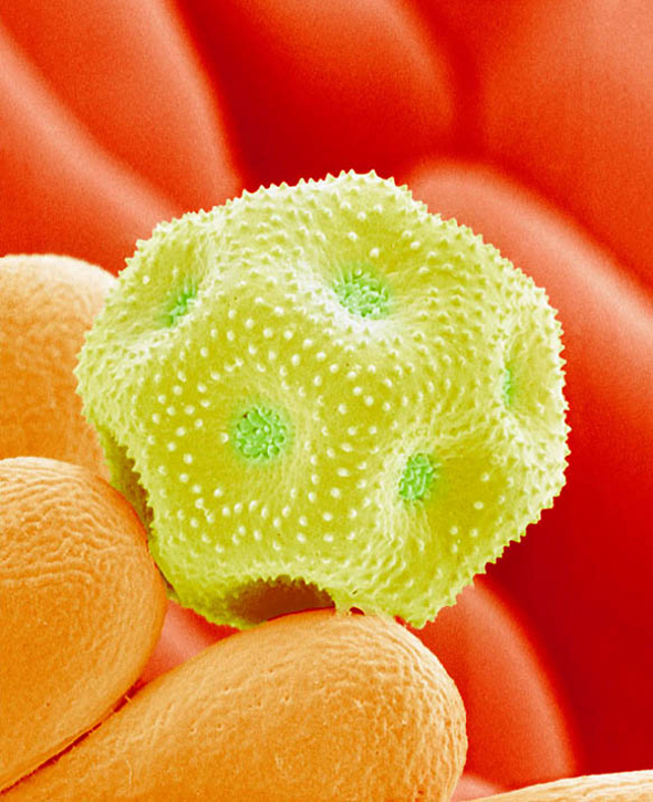 I’ll grant that some of the images are of pollen, but I have the sneaking suspicion that the photographer squeezed in a couple of Nerf balls, and cantaloupes for another one of those images. . . .