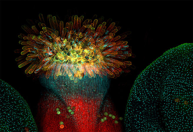 Image: Mendel’s Dream Arabidopsis flower captured with confocal microscopy by Heiti Paves, Centre of Excellence ENVIRON, Estonia.