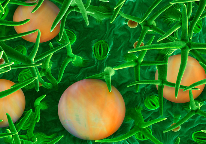 Mystery Monday: What is this? Not another alien from the movie Prometheus in all its 3D gory glory. It’s a scanning EM image of the under surface of a lavender leaf at a scale of 1/50th of a centimeter.