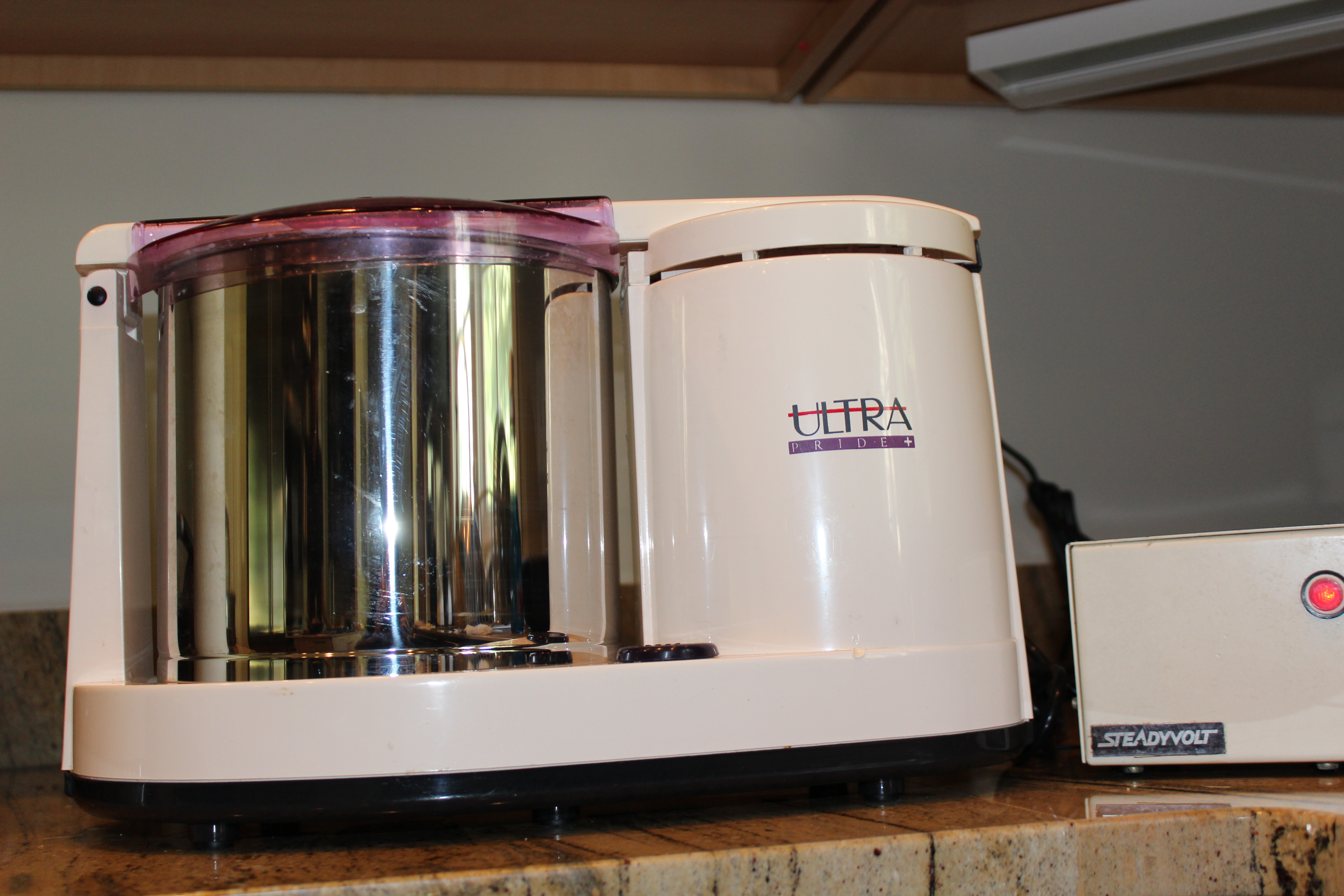 I straightened my aching, tote bag burdened shoulders with pride. “That is a table top granite wet grain grinder”. Pausing only to note his mild interest, I launched forth saying more or less the following (possibly, more): It has two granite cones that rotate within a motorized, spinning stainless steel chamber with an attached paddle and stone base. It is used for grinding lentils and rice to a fine, fluffy batter that is fermented to make dosas. An ordinary blender with a steel blade is marginally adequate but a grinder is best for the authentic silky feel to the crepe.