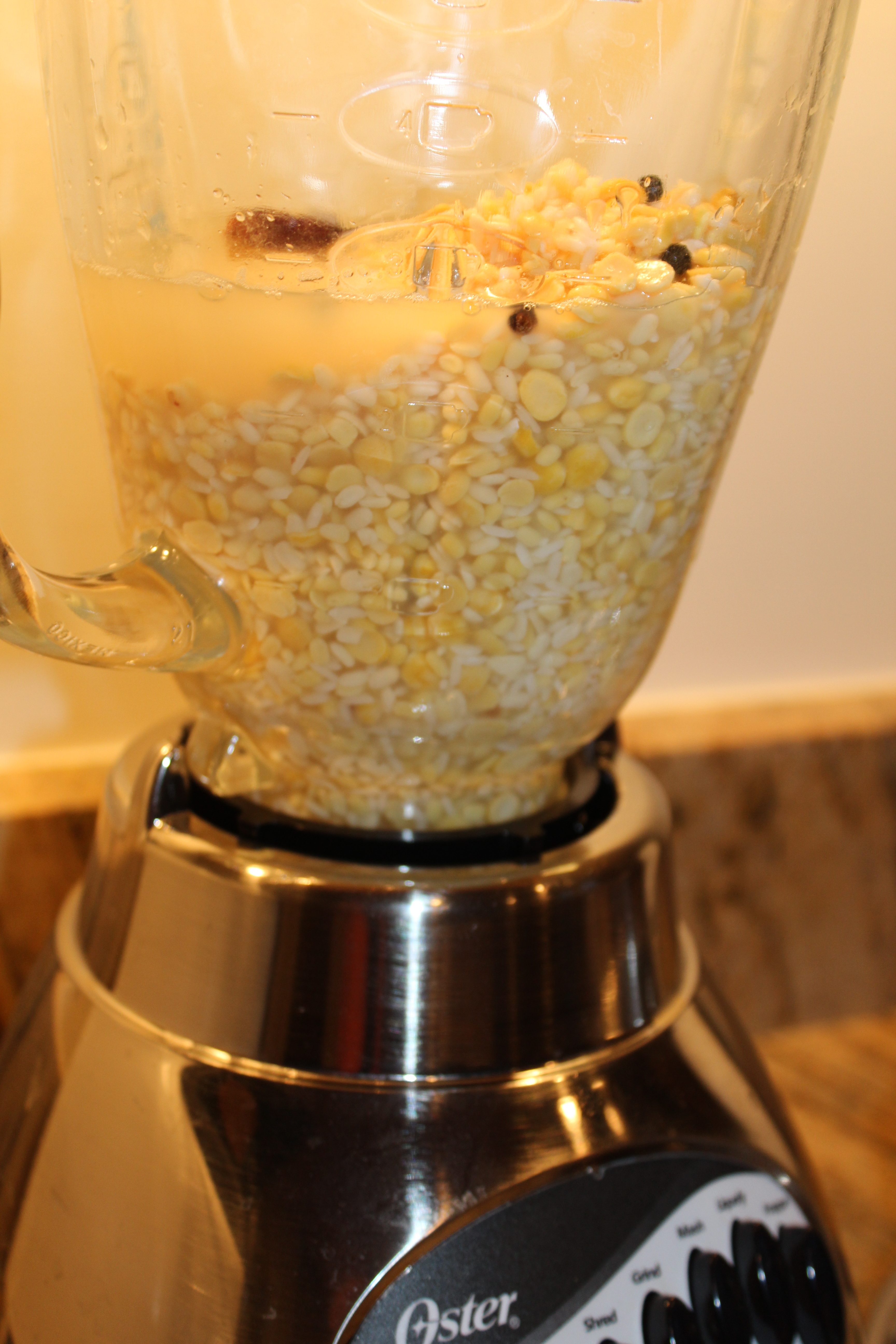 - Soak the rice and dals with a few pepper corns and dry red chillies for a couple of hours.