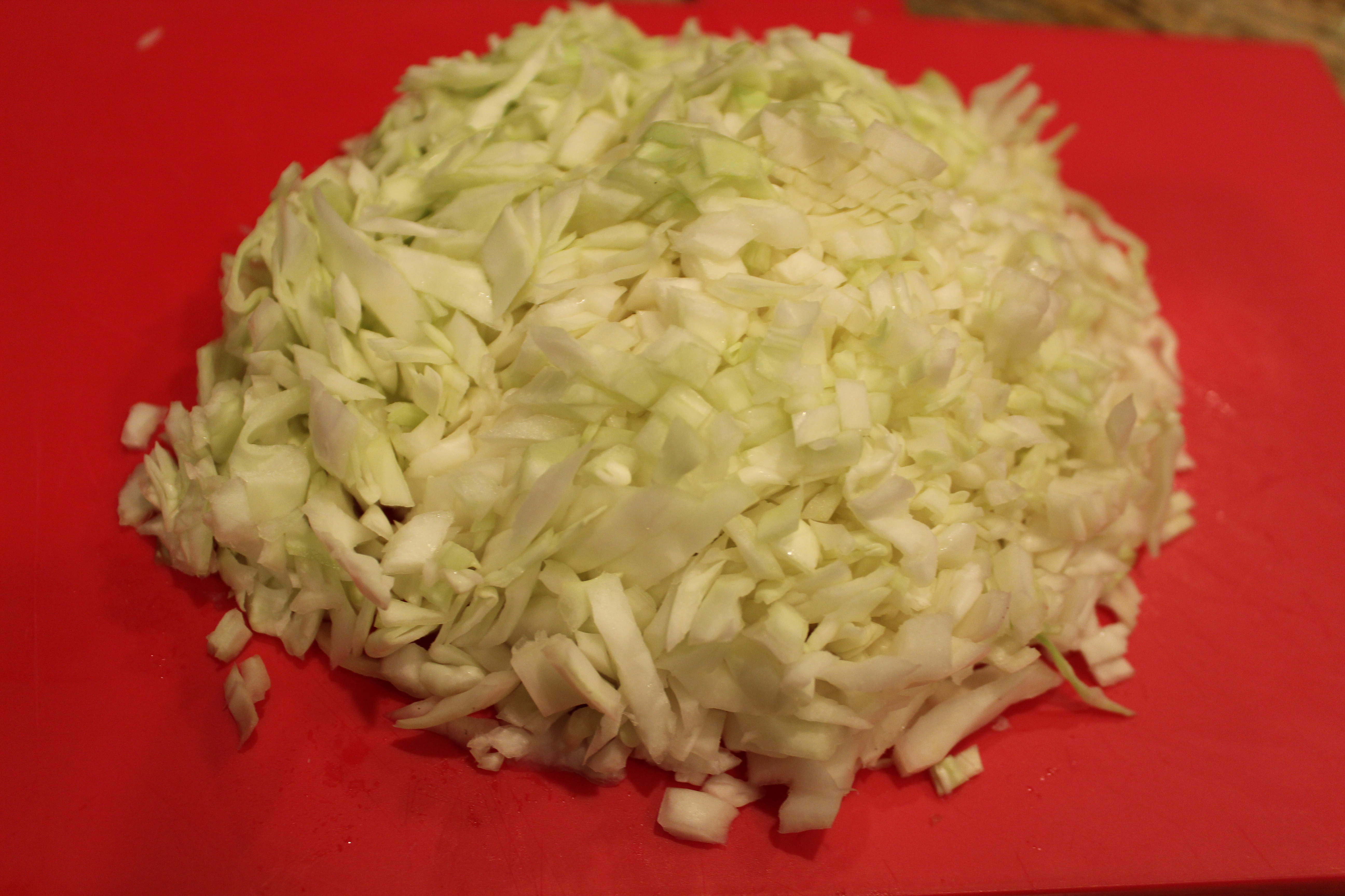 - Chop about a third of a small cabbage finely, and add it to the batter with salt to taste.