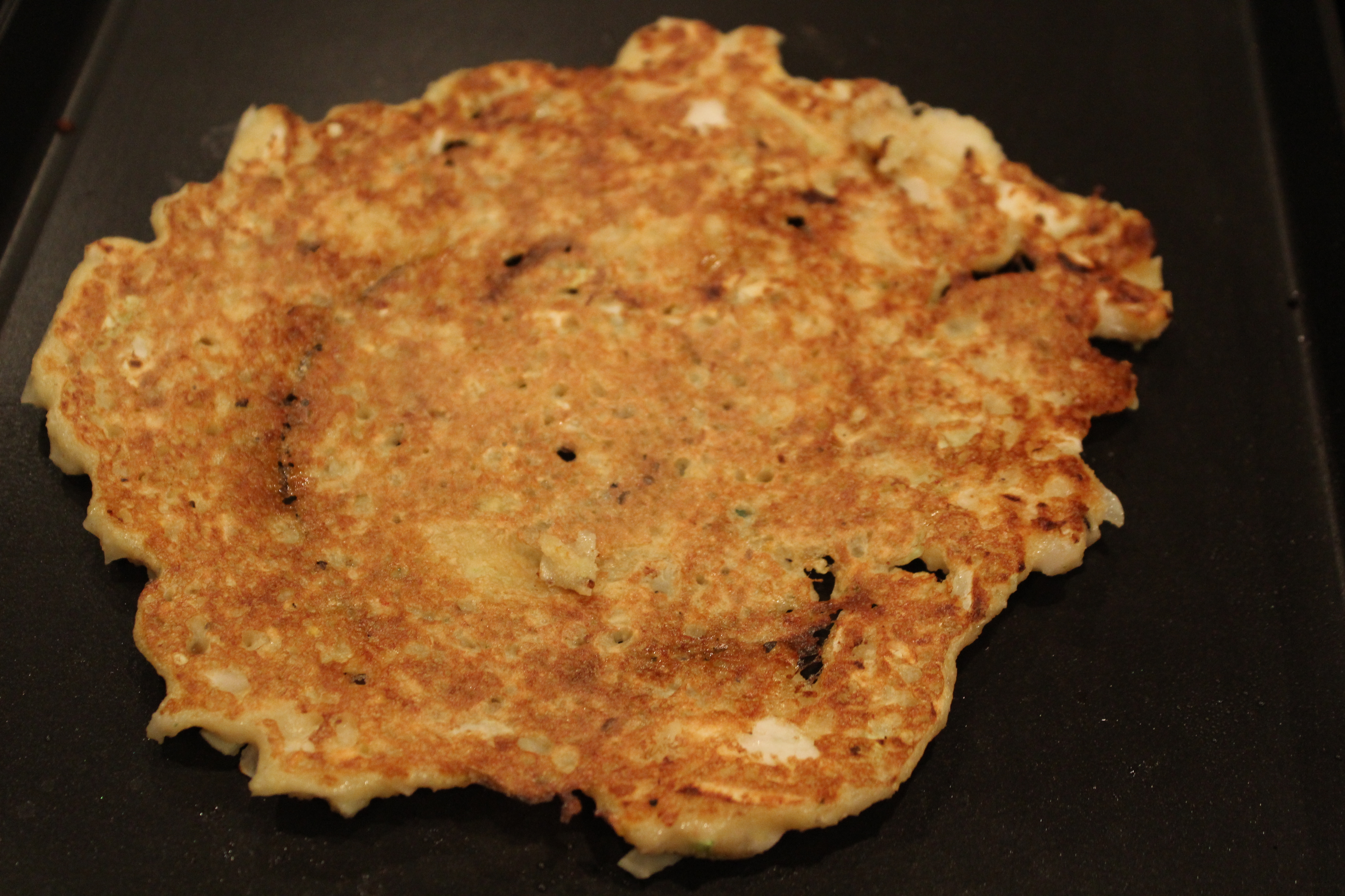 Heat a nonstick or seasoned cast iron griddle. Set aside some vegetable oil. I add some toasted sesame oil for a more aromatic mix.
