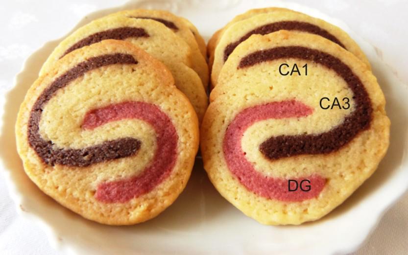 Sweet Memories: Do you recall what you had for dessert at your last dinner party? I’m sure you would remember the hippocampus cookies (left image)! The hippocampus (right image) is the part of our brain responsible for episodic memory, the kind associated with a great dinner surrounded by family or friends. It enables you to “play back” the memories, until eventually the memory becomes ingrained in the cortex.