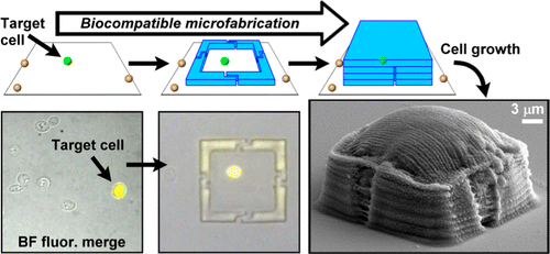 this technique can also be used to fabricate scaffolds, from SEM image it looks like the prisoners are adopting to the prison shape , its really fascinating 😀 . By the way did they perform lithography on a substrate with cell culture already on it ? I mean is it possible to perform lithography in presence of living cells on the substrate? besides cells should remain stable for a minute until they finish prison construction, really challenging !