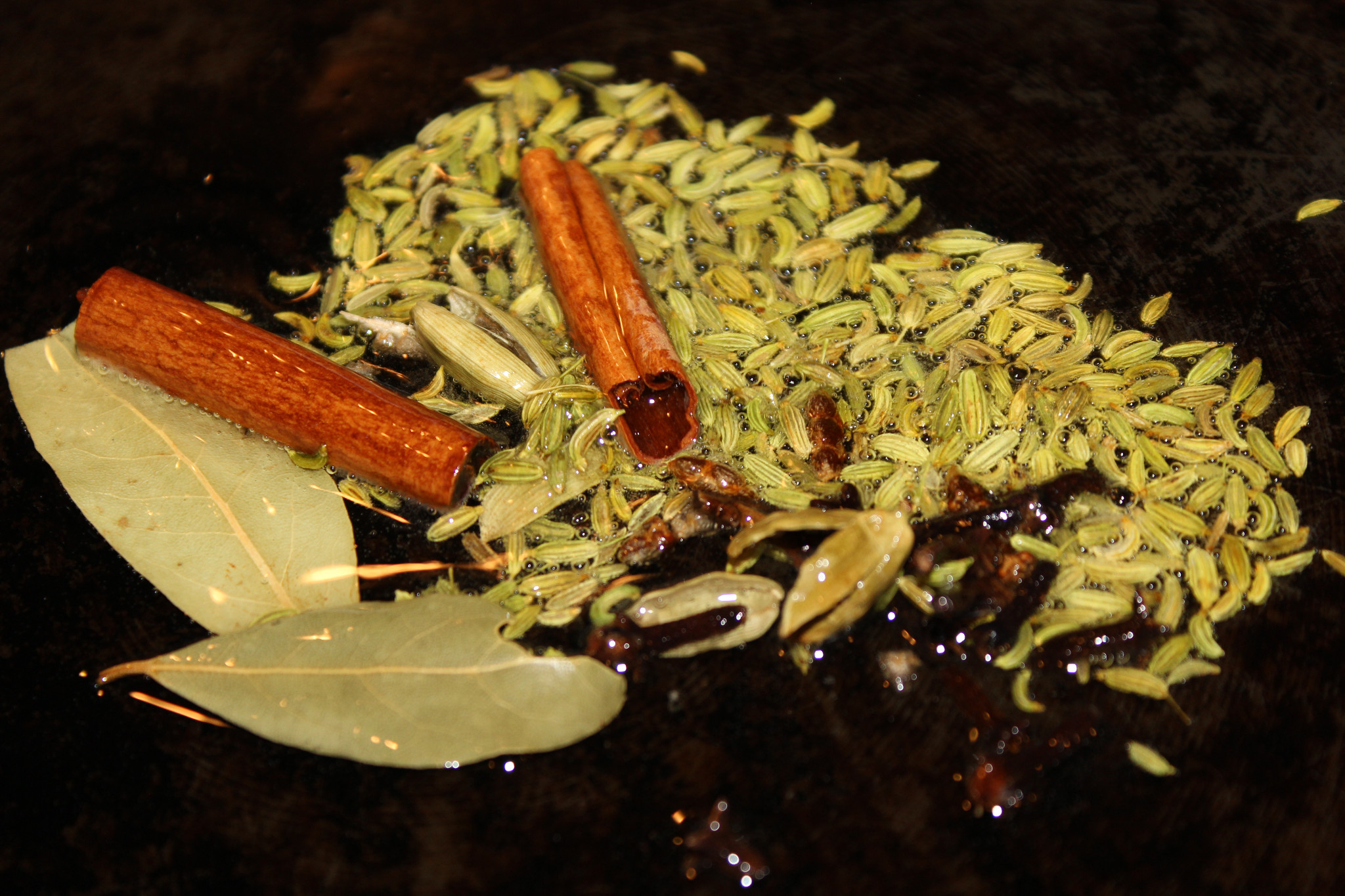 4. Measure out Spices: 2-3 cardamom pods, split (you ought to save the shells for tea, but I left them in), 2 bay leaves, a cinnamon stick, 3-5 cloves and a tablespoon of fennel seed.