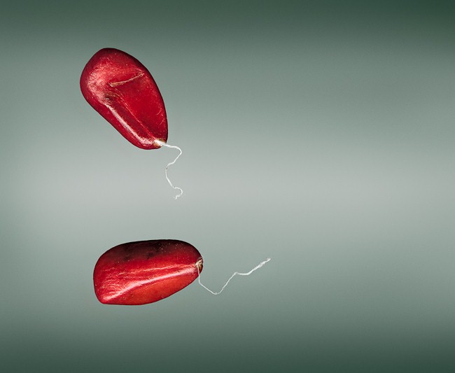 The little red pomegranate seeds with the rootlet emerging reminded me of sperm too.