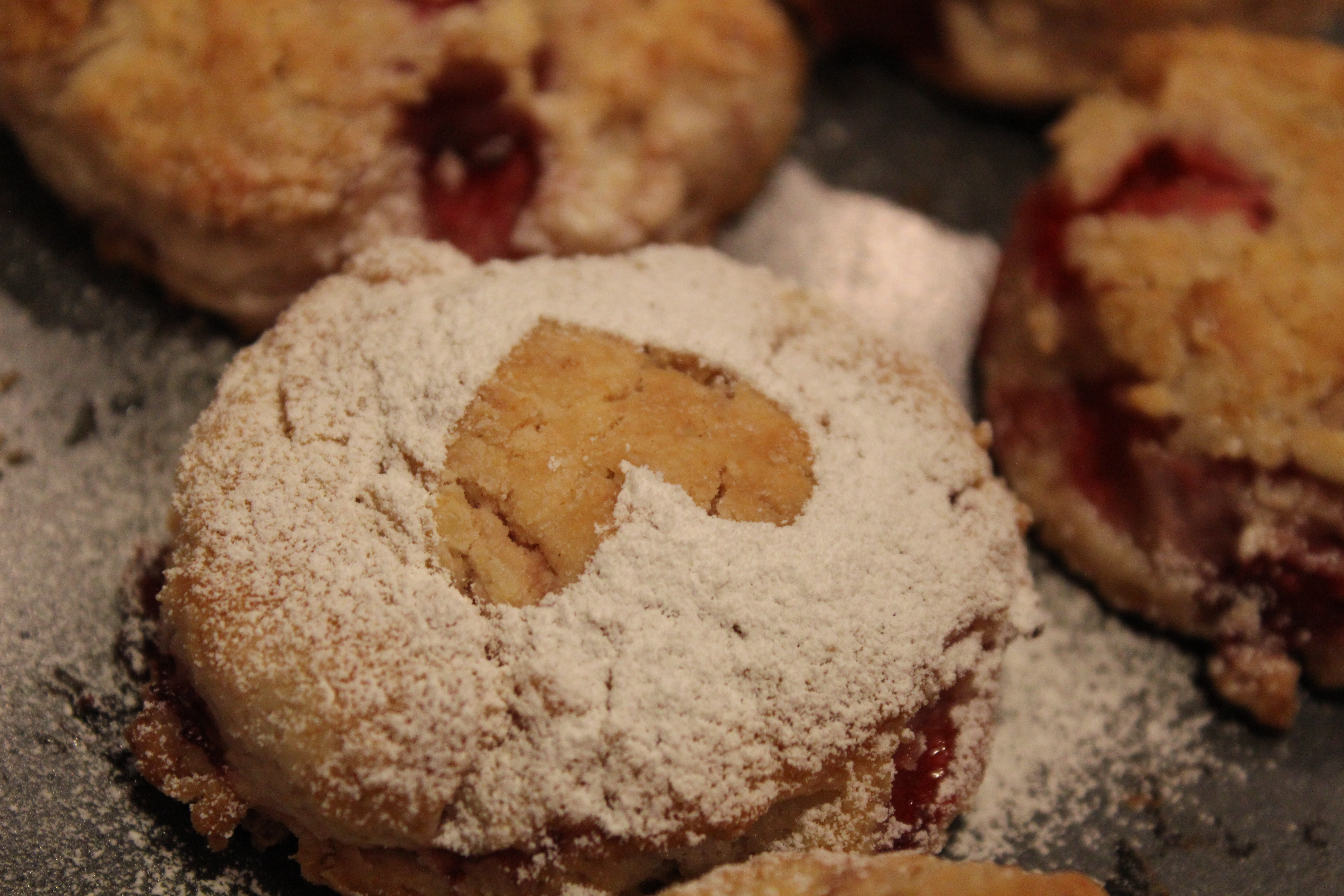 - Make a wonderful mess by putting some confectioners sugar into a tea strainer, placed over a small bowl. Using a knife, tap the strainer so that sugar is dusted over your paper heart placed on top of the scone. Remove the heart and admire the pattern. This goes pretty quickly, much the same as my patience.