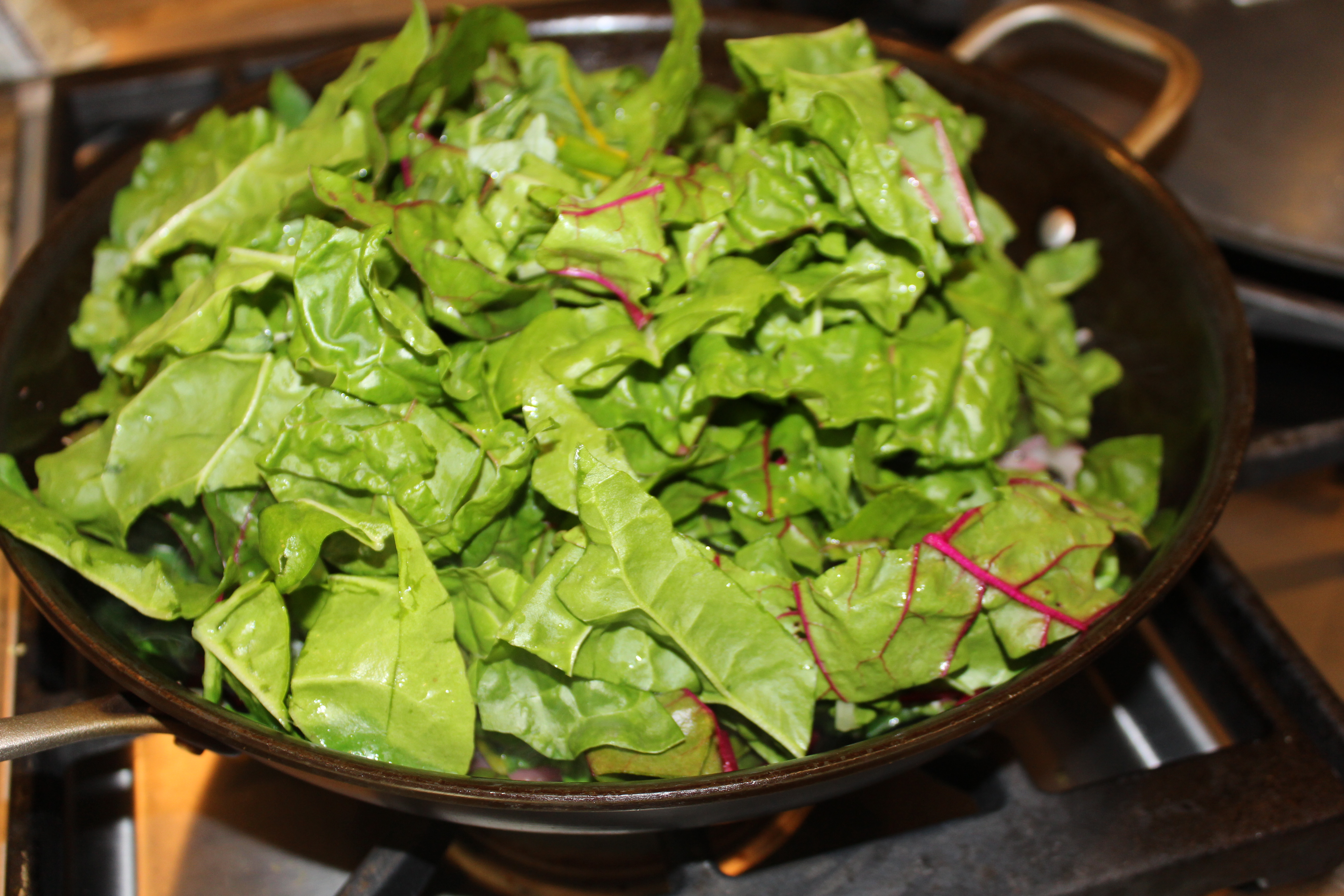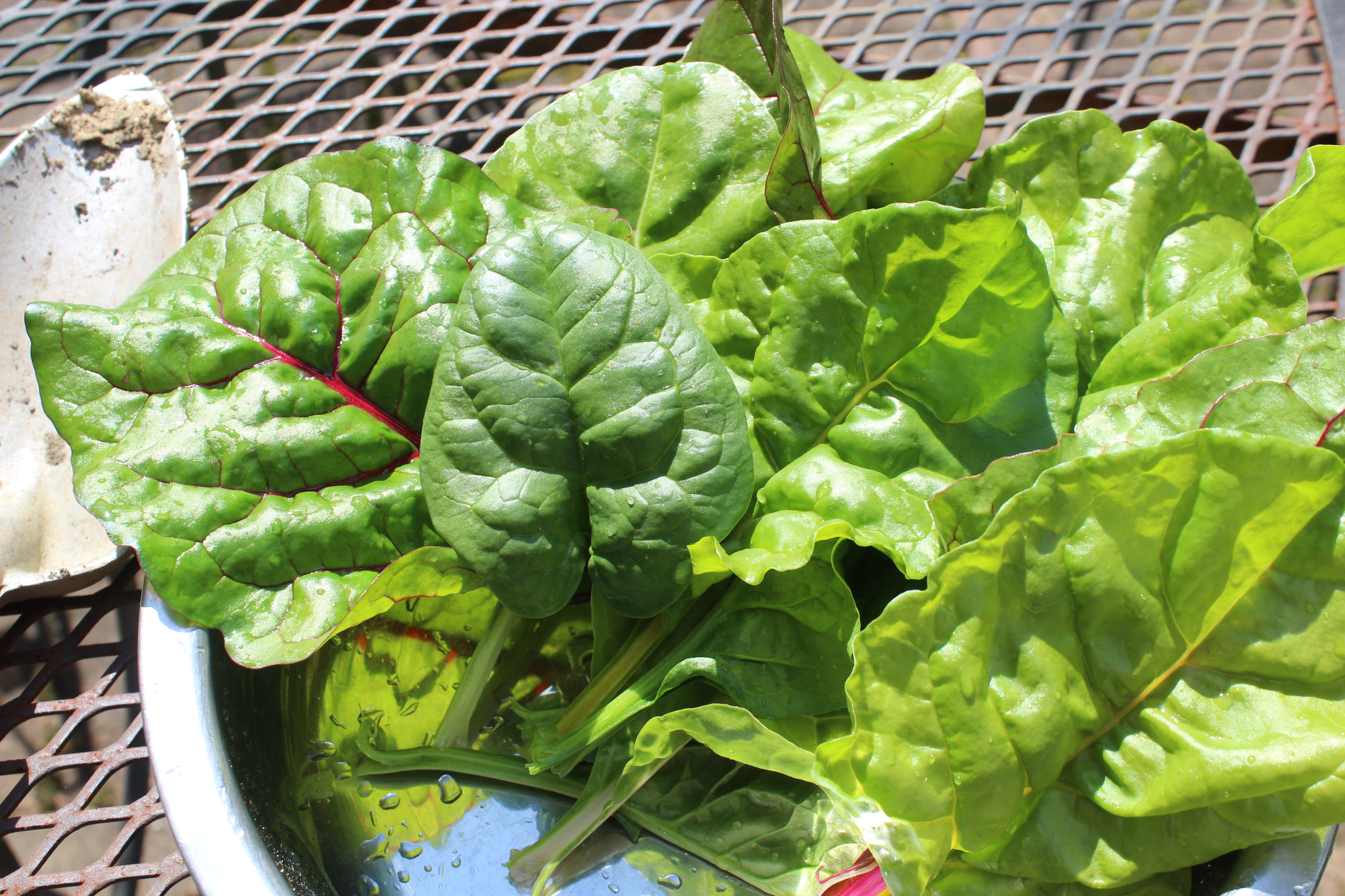 On such a day as this, we harvested spring greens from our backyard patch. Sturdy collard leaves, Swiss Chard with their comically colored bright stalks of yellow and red, darkly green spinach.