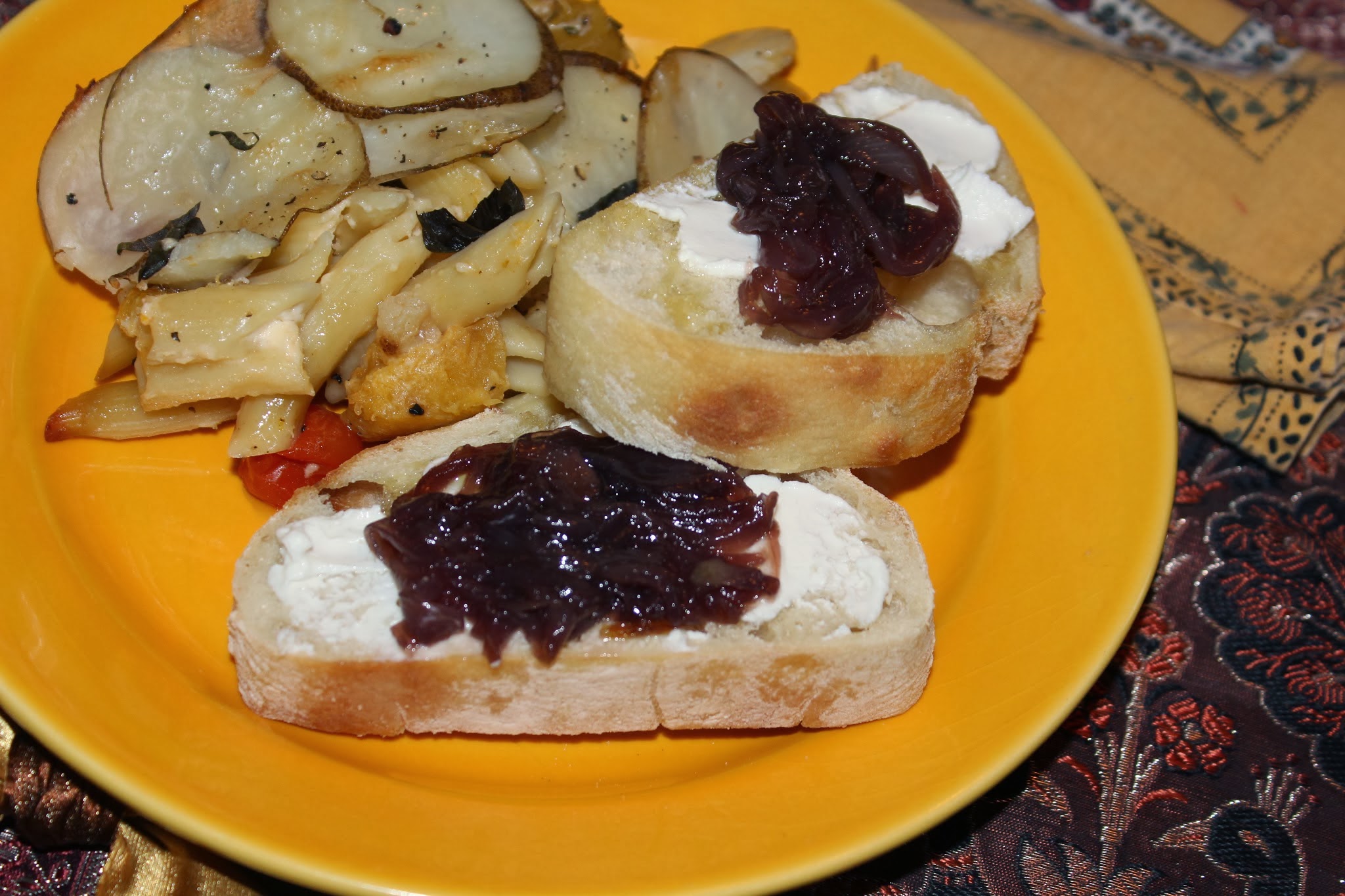 That looks really delicious Rajini Rao ~ I wouldn’t have thought of onion jam, but it sounds great, paired with the cheese.