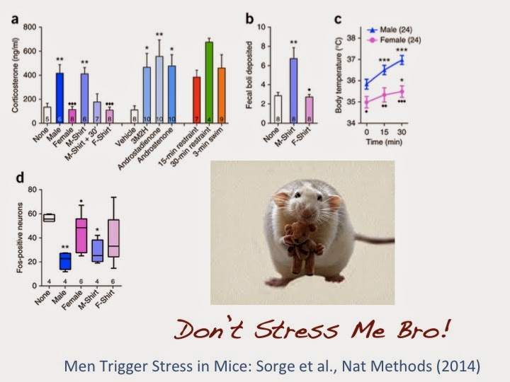 REF: R.E. Sorge et al., “Olfactory exposure to males, including men, causes stress and related analgesia in rodents,” Nature Methods, doi:10.1038/nmeth.2935, 2014. http://goo.gl/9qpNh9
