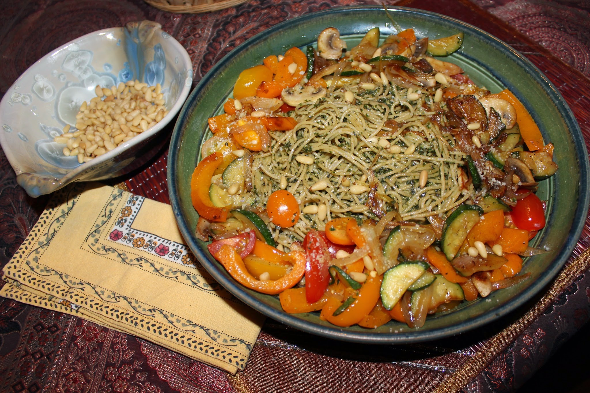 Each summer, for the past 80 years, scientists having been making the pilgrimage to the Gordon Research Conferences that cover hundreds of topics in physics, chemistry and biology. Discussions are intense, “off the record” and feature unpublished work. Isolated from the metropolitan hubbub, sites are typically in rural New England, Tuscany or the Swiss Alps (see my pix from Les Diablerets here: http://goo.gl/8qKpil). Afternoons are free, and we ventured into a charming old town where we explored a long-forgotten graveyard and discovered hand thrown pottery with colorful, crystalline glazes. They inspired me to make a pesto pasta with summer vegetables as soon as I returned home! I hope you enjoy these pictures in place of my usual #ScienceSunday  post.