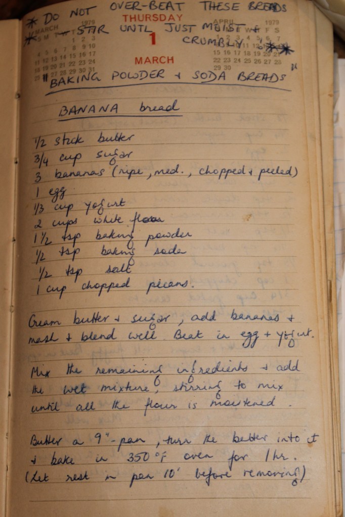 Note: before you ask, no..I was not baking bread in 1979. It is an old diary co-opted into a recipe book. Judging by the neatness of my penmanship, I probably wrote it down in the late ’80’s. That’s pretty old too, I know.