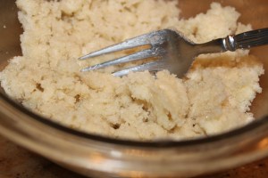 Separately mix the dry ingredients and the wet. Does not look appetizing at this point.